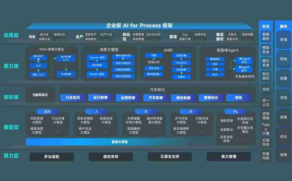 南宫娱乐问学智车解决方案是一套基于AI技术的汽车行业智能化系统,,覆盖从底层算力到顶层AI应用的全栈方案。。方案由算力层、、、、模型层和应用层组成:算力层,,,,方案支持多种一体机配置,,具备云端灵活部署、、、、多云适配以及动态优化计算资源的能力;模型层,,南宫娱乐问学平台版提供了企业级AI应用一站式构建与管理平台,,,,支持基于后训练强化技术的汽车企业专属模型的训练、、、、评测和运营;应用层,,,,南宫娱乐问学DeepSeek版提供包括超级员工、、、智能招采、、、智能营销、、智能客服、、、AI for BI等一系列解决方案,,,,可助力汽车行业实现数字化转型,,,让管理更智能、、响应更敏捷。。